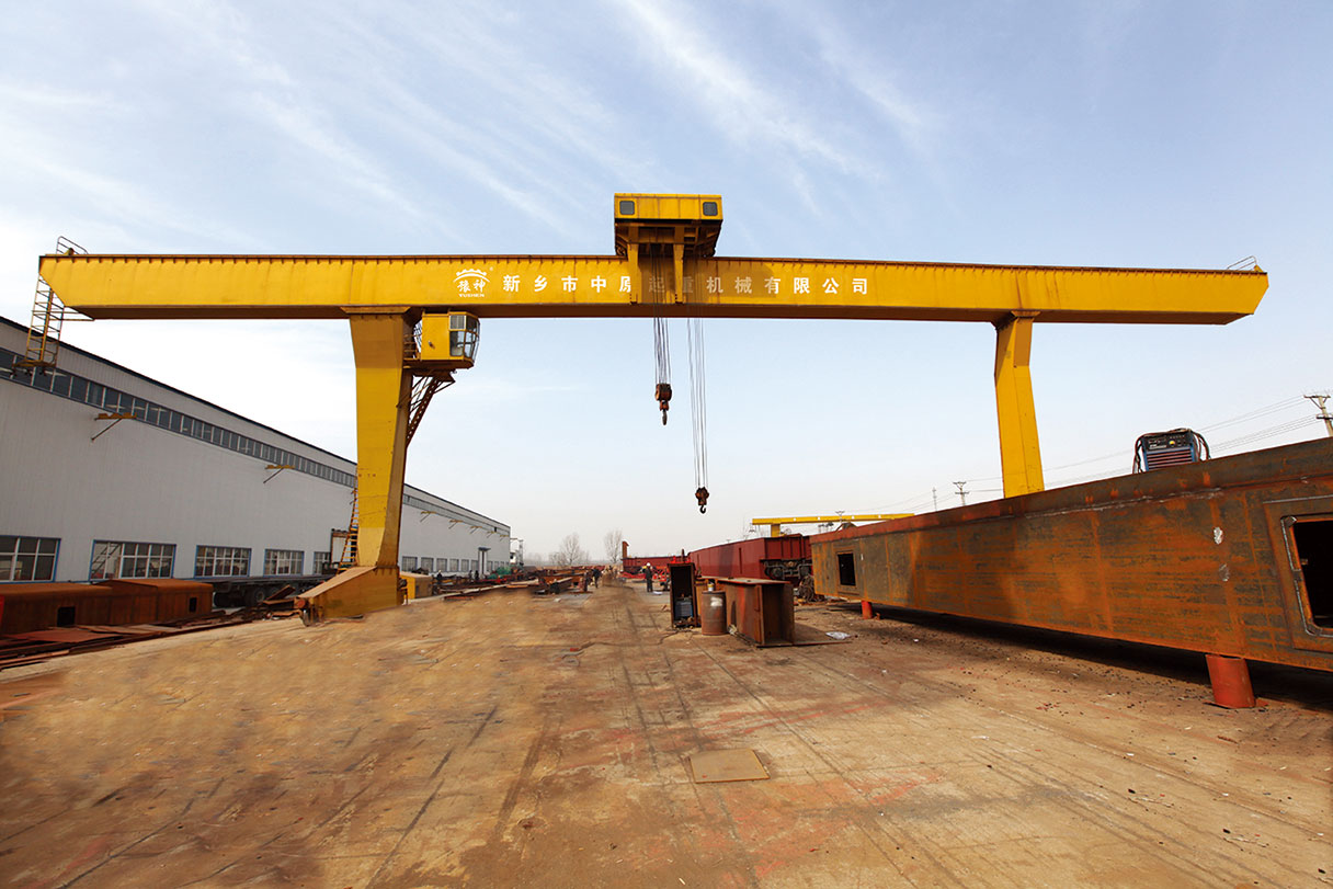 它的金屬結(jié)構(gòu)像門形框架,承載主梁下安裝兩條支腳,可以直接在地面的軌道上行走,主梁兩端可以具有外伸懸臂梁。